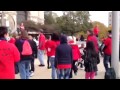 dances outside the Milwaukee County Courthouse to raise awareness for visually